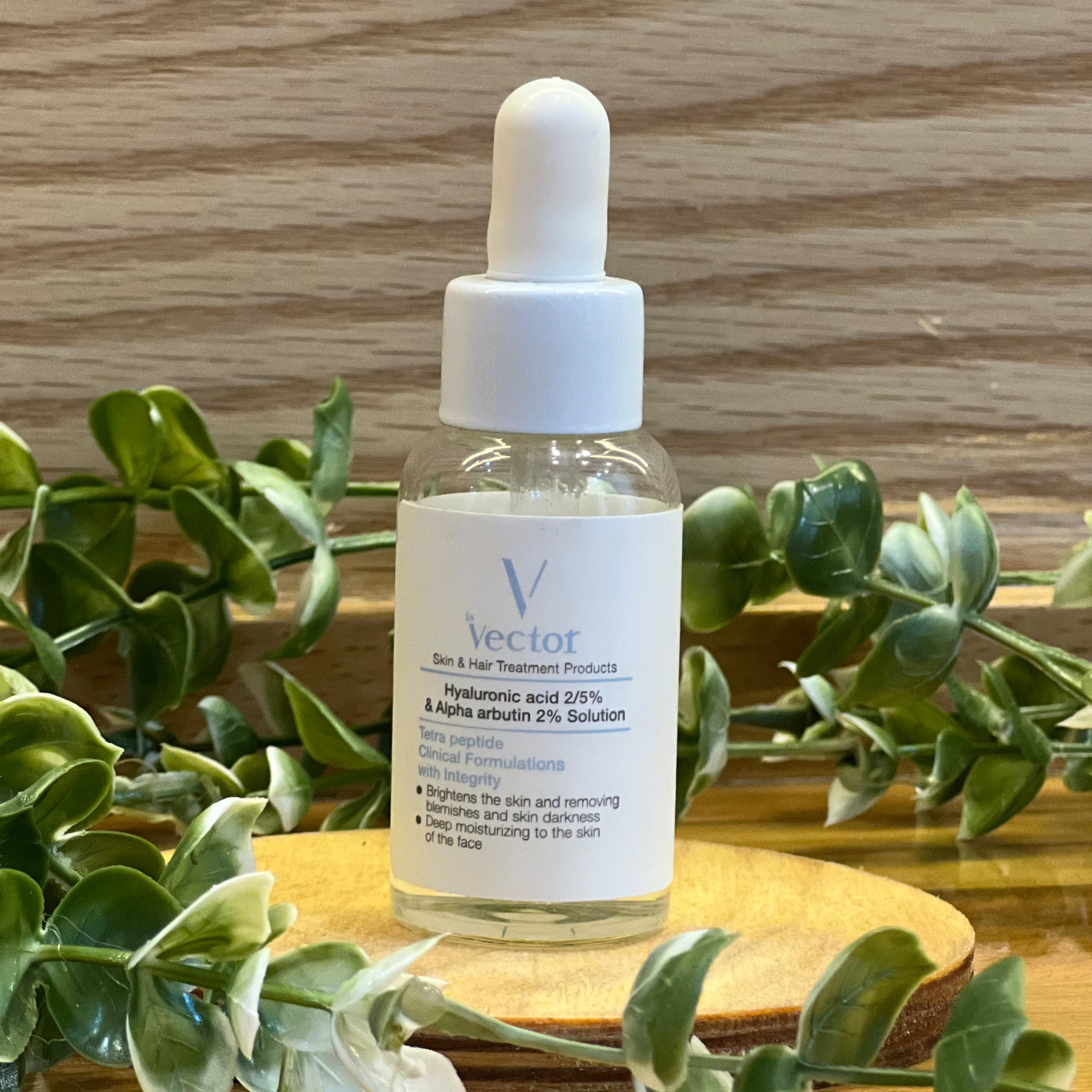 سرم هیالورونیک اسید و آلفا آربوتین وکتور یکی از محصولاتی است که بر پایه ترکیباتی همچون هیالورونیک اسید و آلفا آربوتین فرموله شده است. آلفا آربوتین موجود در سرم هیالورونیک اسید وکتور، از تولید ملانین و تیره شدن رنگ پوست جلوگیری میکند. هیالورونیک اسید موجود در این سرم نیز باعث رطوبت رسانی و هیدریشن پوست میشود و در کاهش چین و چروکها، بهبود الاستیسیته پوست و همچنین کاهش التهابات پوستی کمک میکند.